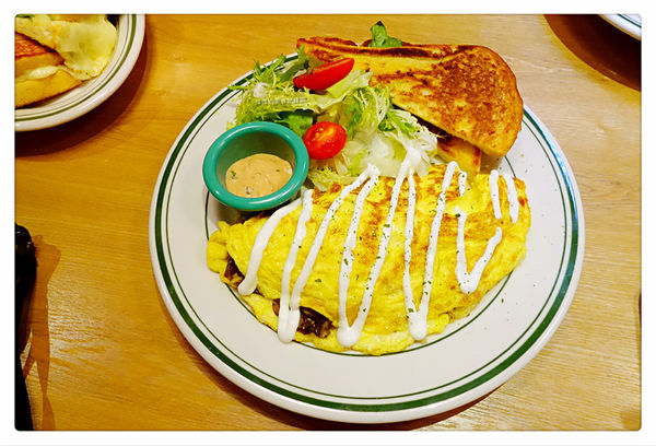 不單單只有歐姆蛋,還附上吐司、綜合生菜