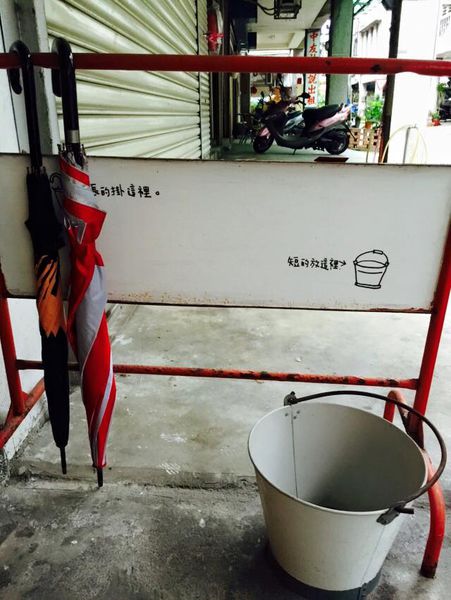 ▲長傘掛上頭,伸縮傘則放在桶子裡(看了莫名會心一笑)