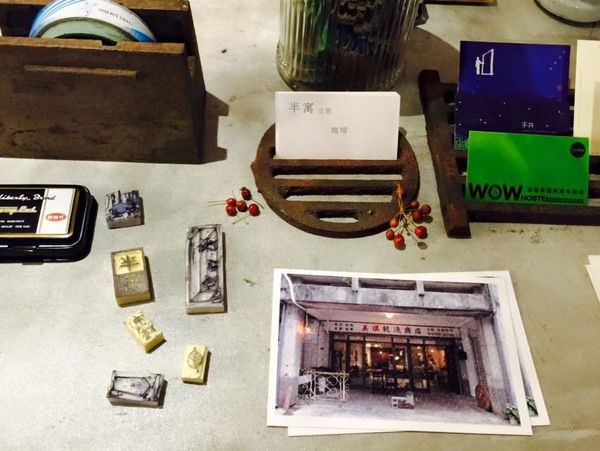 ▲吧台有半寓的紀念章可以蓋,還有半寓店面的明信片供客人索取