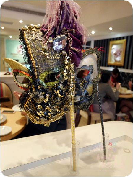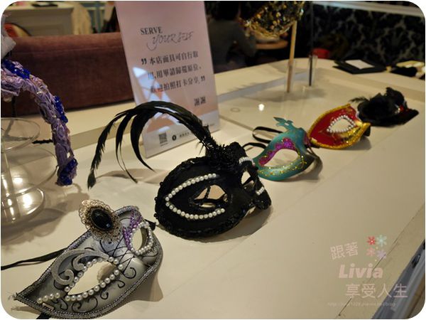 店內也有提供許多嘉年華的華麗面具可以使用拍照喔!