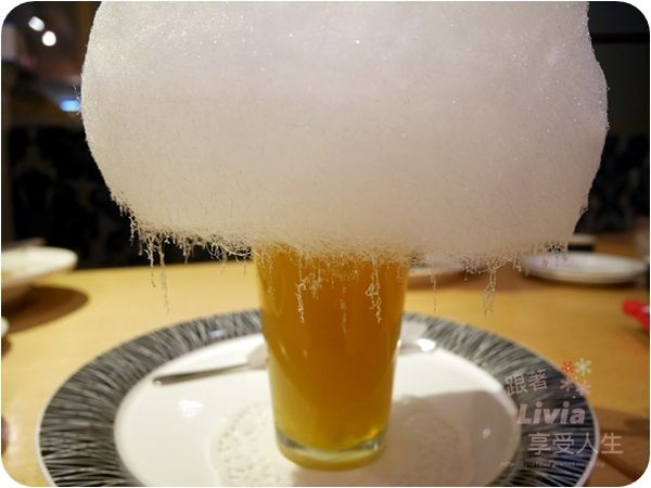 上面那一大朵的棉花糖可以先撥著吃一點,然後再慢慢讓他進入飲料中融化,