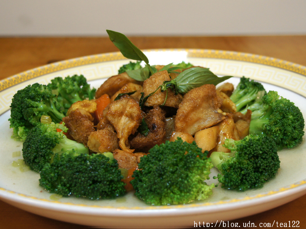 Q彈有嚼感的猴頭菇搭上鮮甜多汁的綠花椰菜,名為花開迎富貴。