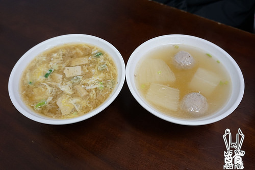 湯的部分則是味噌湯加蛋包 以及菜頭湯加貢丸