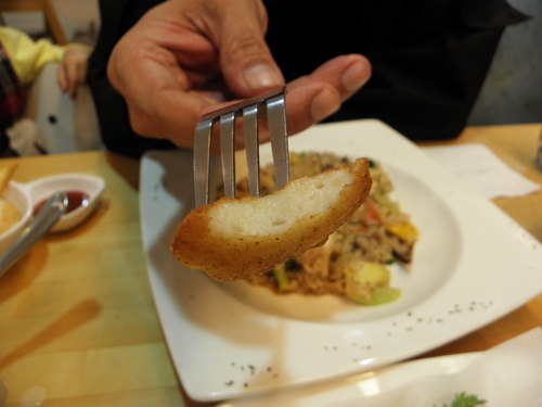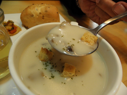 裡頭還有蘑菇小料搭上泡上酥軟的麵包丁