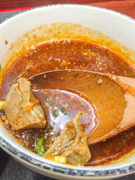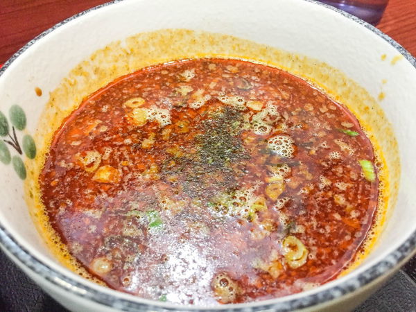 這碗麻辣沾汁不錯,算是臺北市有辣的拉麵/沾麵中少數有麻感的,而且裡面蠻大方還有好幾塊叉燒塊,