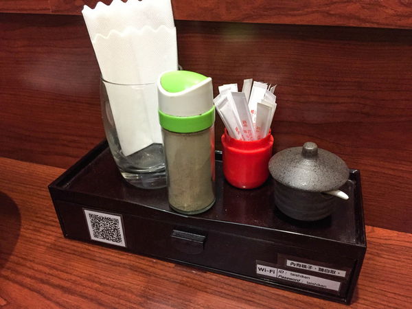調味料比較簡單只有胡椒粉跟辣椒醬,比較特別的是有提供wifi。講到這個就讓我想到之前有次去蘭丸,