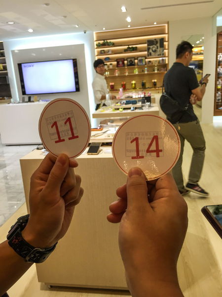 都排在兩個入口其中一個的最前面了,結果衝到三樓還只拿到11號跟14號,還好只要