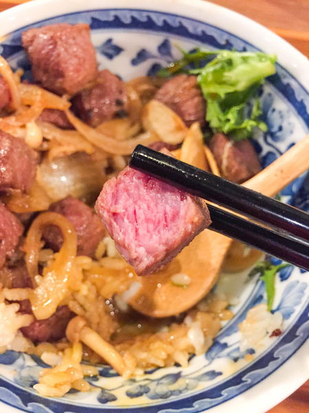 自從領到餐券後最期待的就是這一碗,看得出來肉量相當澎湃,搭配炒過的洋蔥、蒜片與菇類,