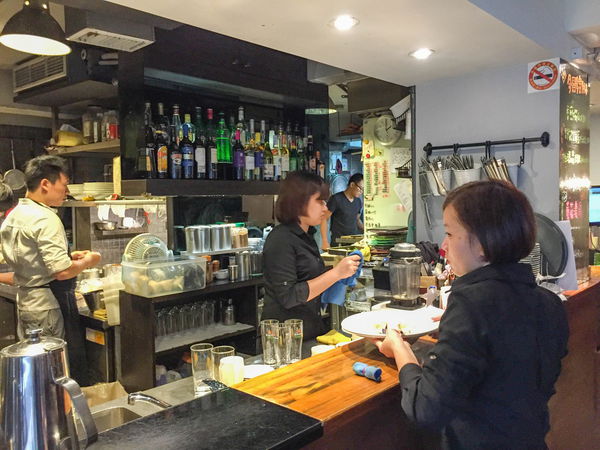 半開放式的廚房分為內外兩區,真正烹調食物的地方是在內區。主廚是去澳洲學廚藝過的臺灣人,