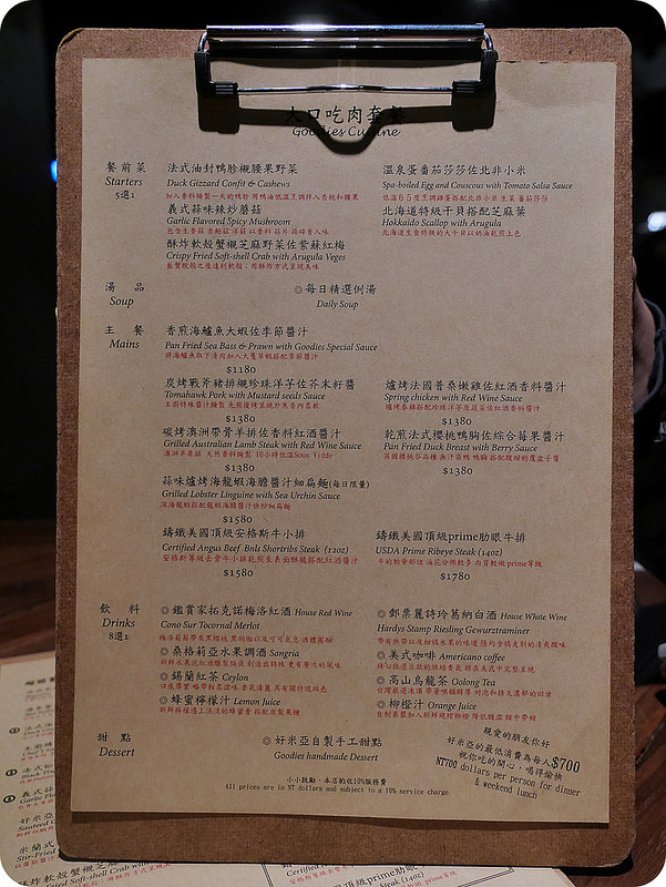 除了甜點以外這裡可是也有很棒的義法料理,從單點的開胃菜、排餐、燉飯、調酒,每人低消NT700