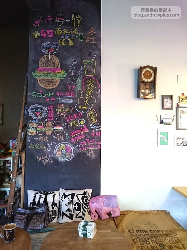 此外這真的是我見過最有菜市場味道的早午餐店了,店內的裝潢看得出來是有精心設計的,但是很多的東西卻都堆在地上,感覺有點雜亂,不過也算是亂中有序啦~~這反而變成了他的另類特色。