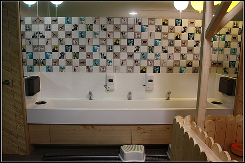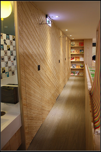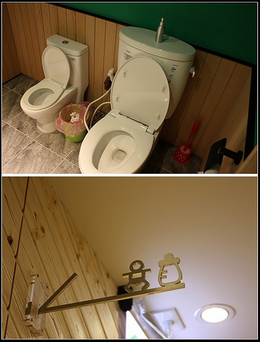 洗手間的設計很隱密,推門跟牆壁的顏色很相似,沒注意看會不知道這裡就是洗手間。