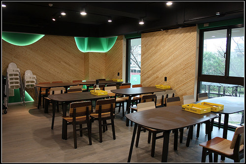 這邊的座位區大概可以容納30~40位左右,用的是一般的木質桌椅。
