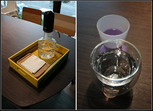 桌上的開水採自助式的,小朋友的杯杯好可愛喔!
