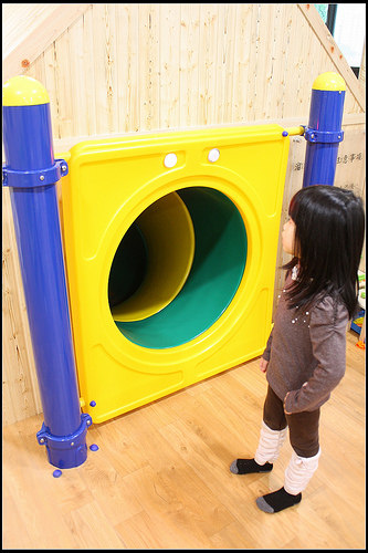 上方還有紅綠燈設計,紅燈表示滑梯不能往下溜,感覺很自動化很貼心,btw,沒有大人在旁邊看顧的話,還是會有小朋友忽視了這樣的訊號,感覺有一咪咪危險。
