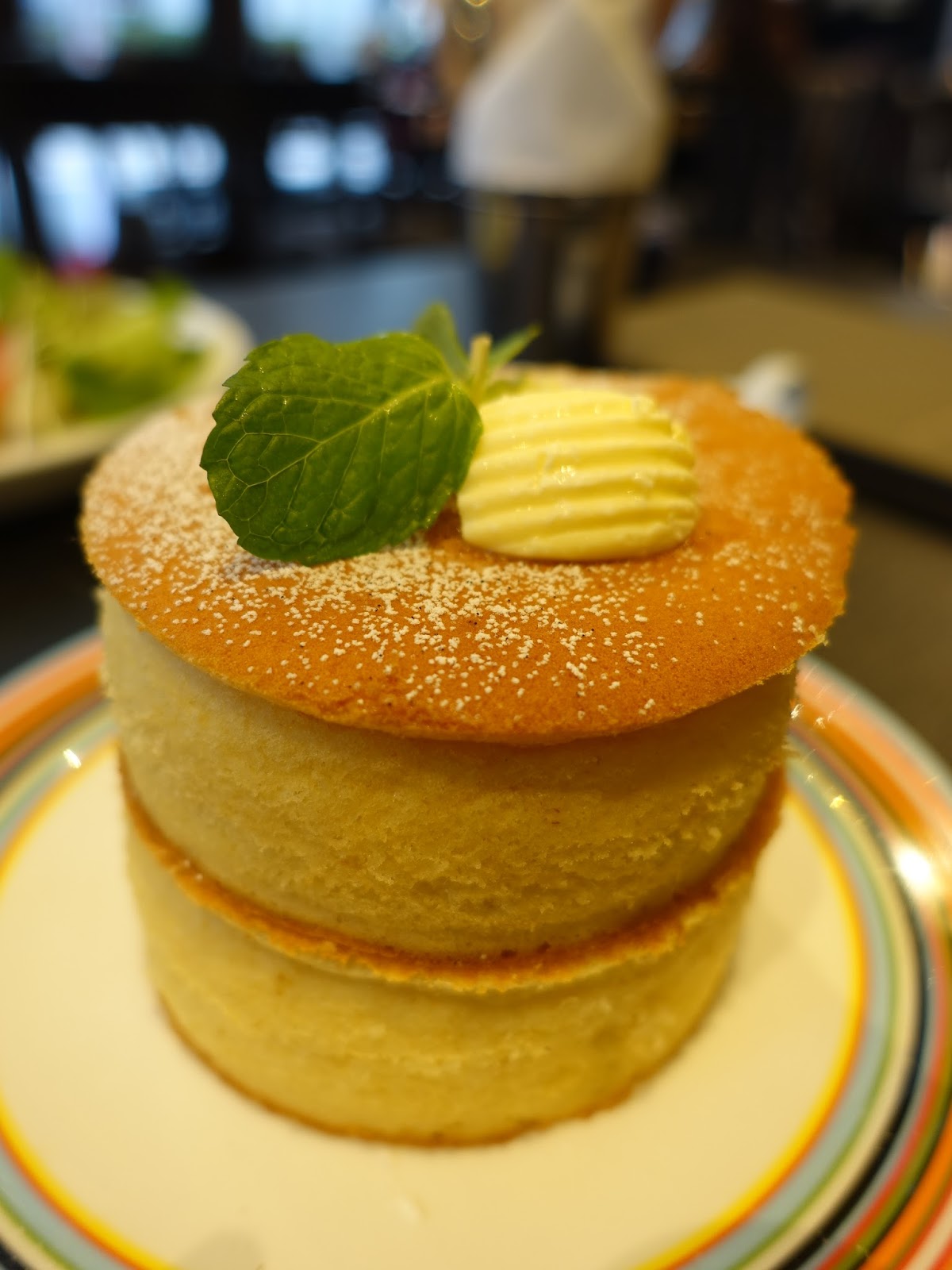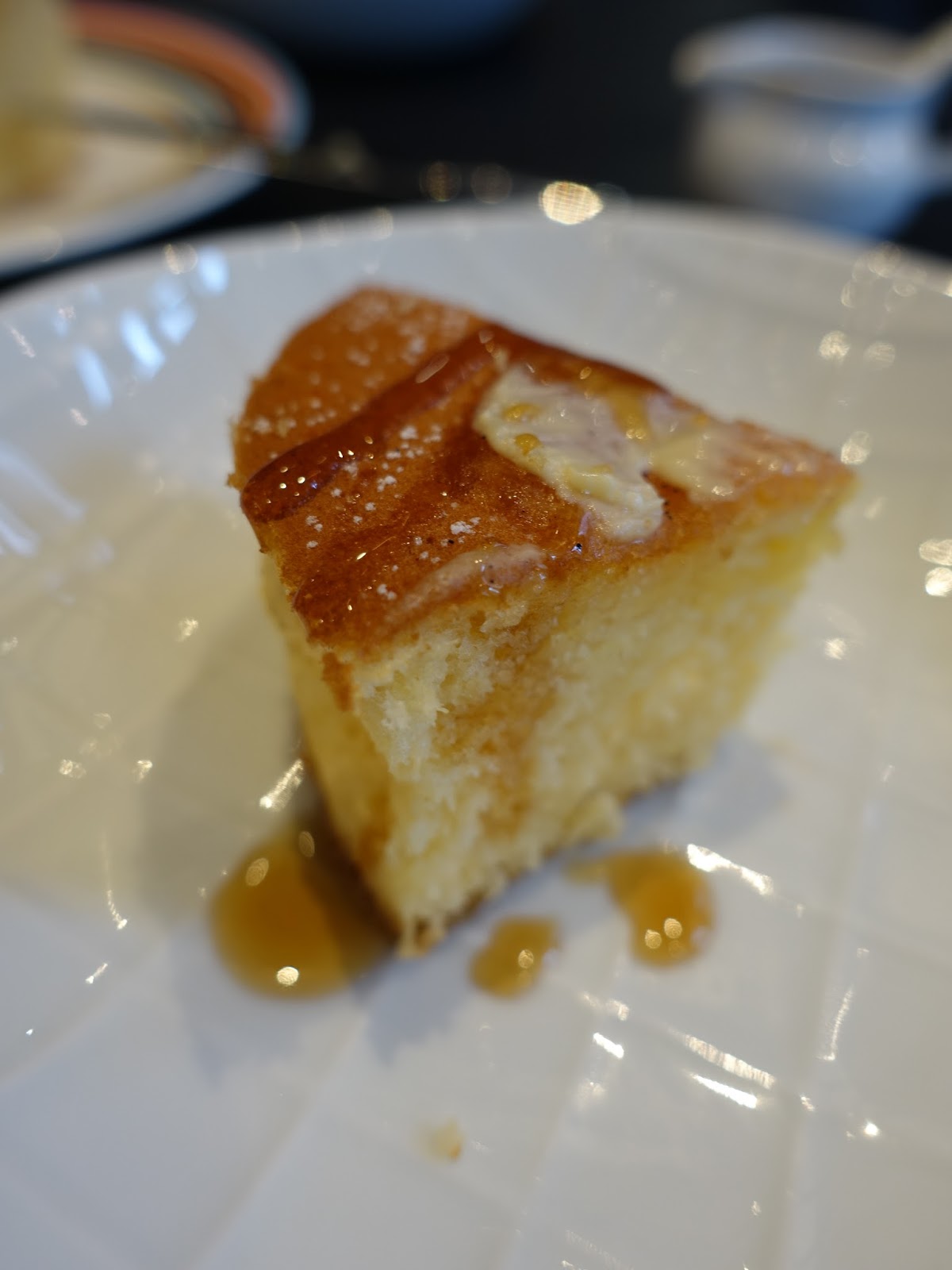 蘇芙蕾厚鬆餅看起來蠻壯觀的,但吃起來有些乾,口感很像是乾厚的杯子蛋糕,必須淋上多一點的楓糖漿來吃比較美味些!上頭的鹹奶油使蛋糕呈現鹹鹹甜甜的味道,讓蛋糕吃起來不會太甜膩。