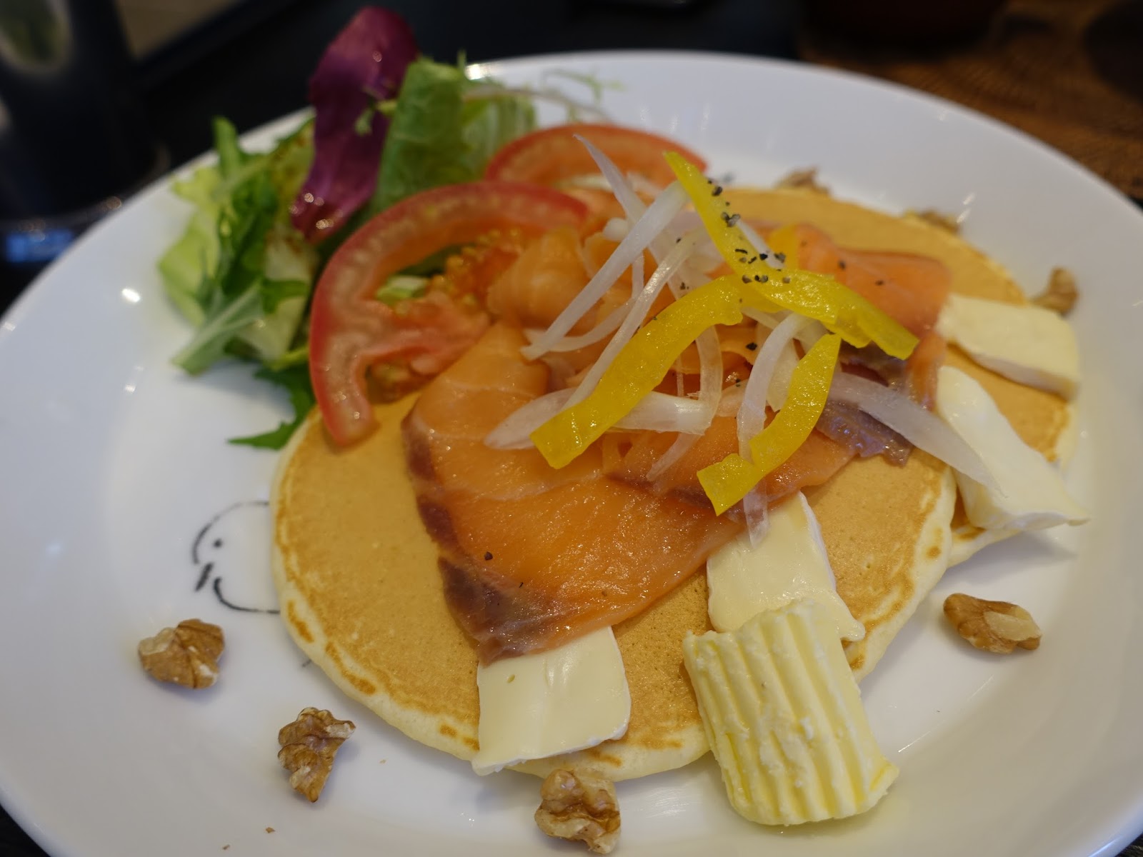 卡布奇諾表現得蠻平凡的,但也說不上不好喝,不苦不澀的咖啡,配著燻鮭魚鬆餅,不會搶掉主餐的味道。