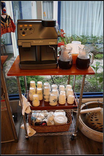 後方還有一處簡易的泡茶區,有提供熱水瓶、3合1咖啡和東方美人茶包。