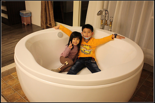 浴缸很大,塞下我家老爺和3小都很足夠!(讚)
