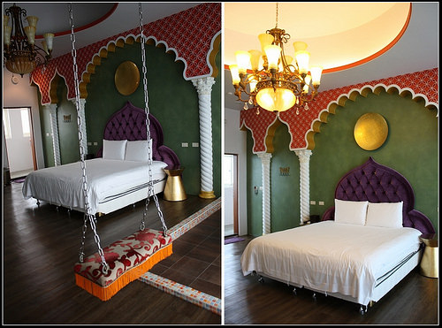 重點來了,房間內還有設置一座浪漫的木質盪鞦韆.....我問過老闆娘~這盪鞦韆有無限重?!老闆娘說很穩固,應該連80KG的爸爸上去坐都OK大丈夫!(楚爸OS:幹嘛洩漏人家體重......)
