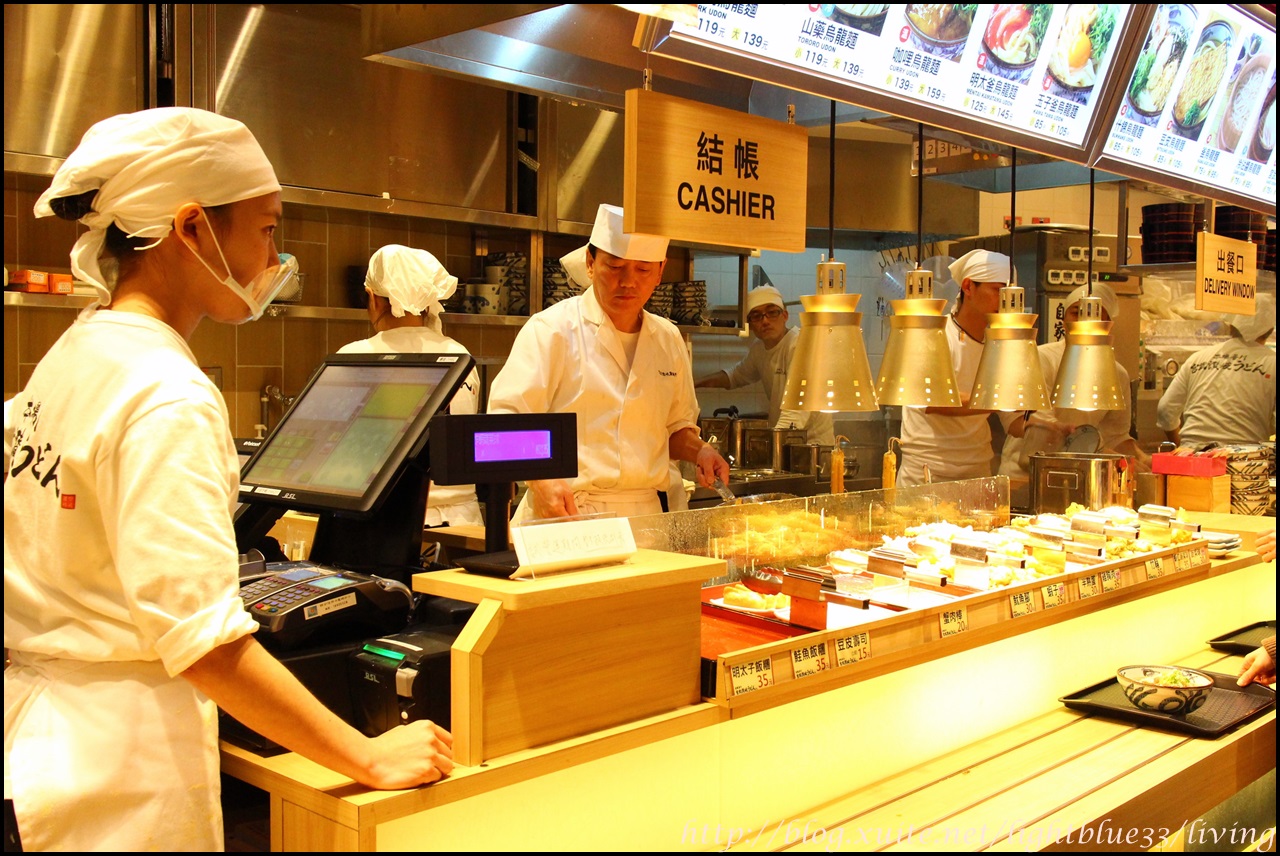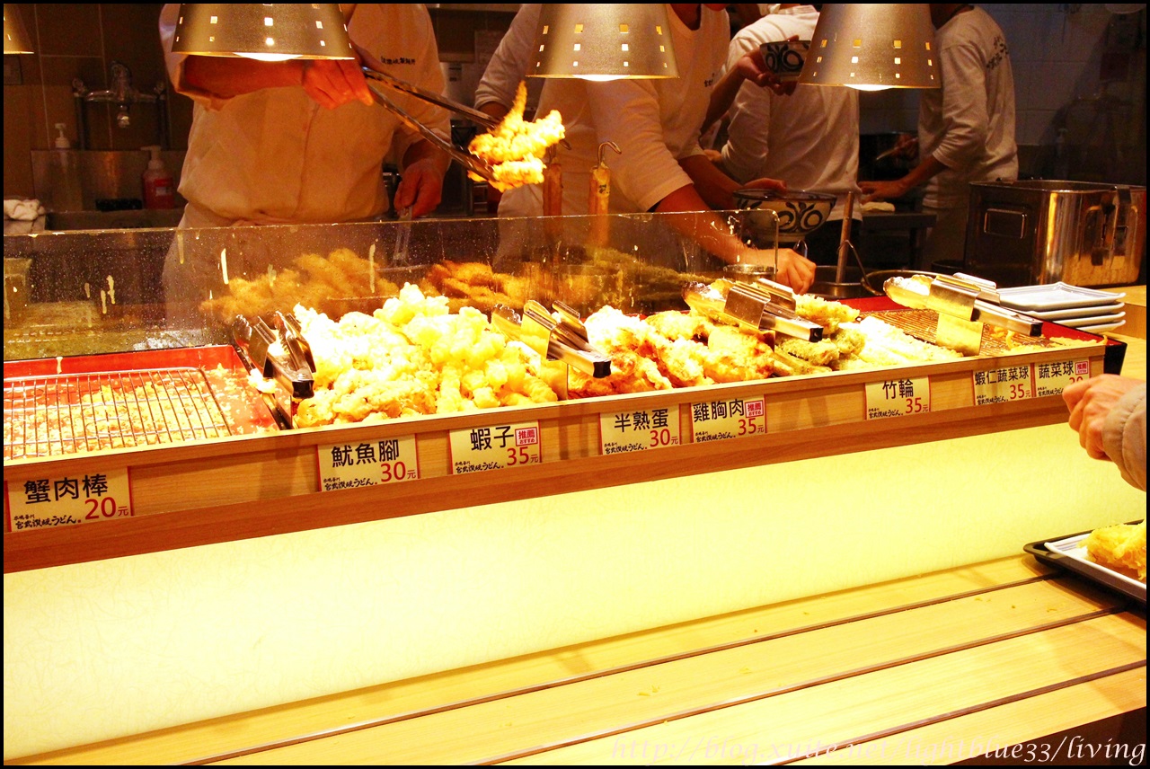 點餐方式是先拿托盤、點麵,然後經過炸物區可以拿盤子自取,最後才結帳,然後自己端盤子去美食街座位區找位子,方式跟丸龜製麵、名代富士蕎麥麵這種體系很像。