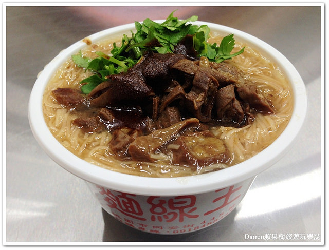 麵線王在南平黃昏夜市旁邊,攤位旁邊還有屈中恆簽名,住在桃園很常看到他的簽名