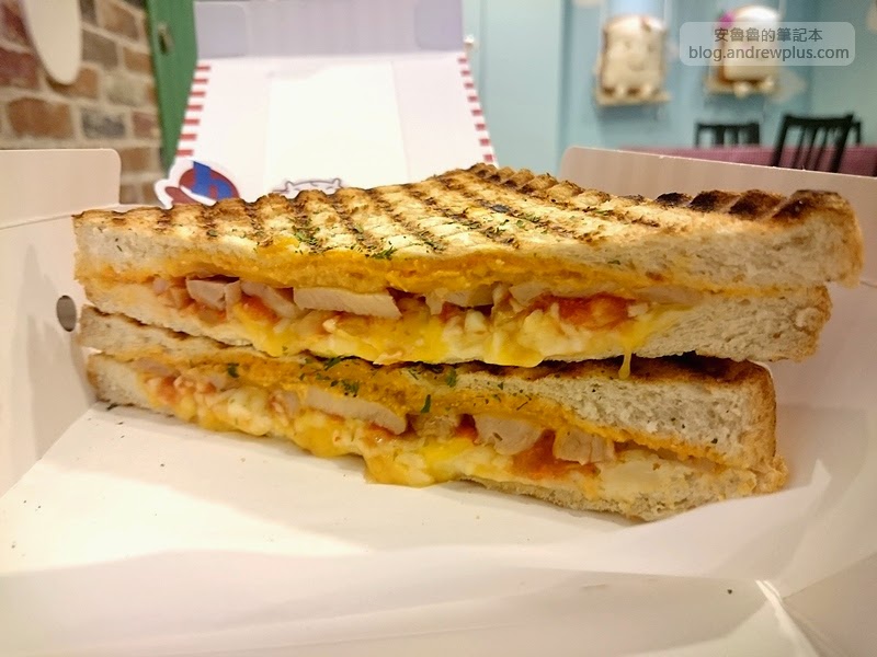 餐點的部份我們點了 : 明太子燻雞帕尼尼,烏雲厚片,伯爵紅茶拿鐵和紅石榴草莓奶茶。小安子一向就是最喜歡吃帕尼尼,押實又烤過的吐司,柔軟中又有口感,帕尼尼中間夾的料很扎實,口味很適中,麥修低麥修鹹。
