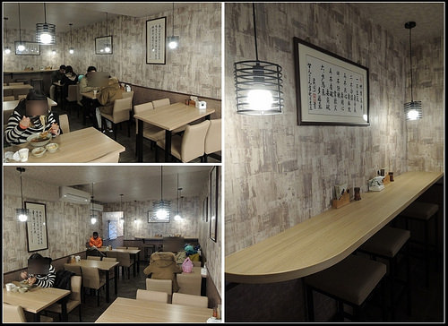 店內大約30個座位左右,不是很大,可是有質感的壁紙、吊燈、牆上的書法,把整個空間布置得蠻簡雅的,剛進門會覺得有一點點昏暗,不過坐下來就不覺得了!