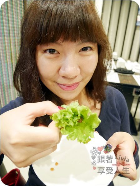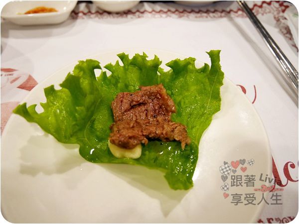 一片生菜一片肉外加一片蒜片,同時放進嘴巴裡,歐~~不~~我的口水!(吞)