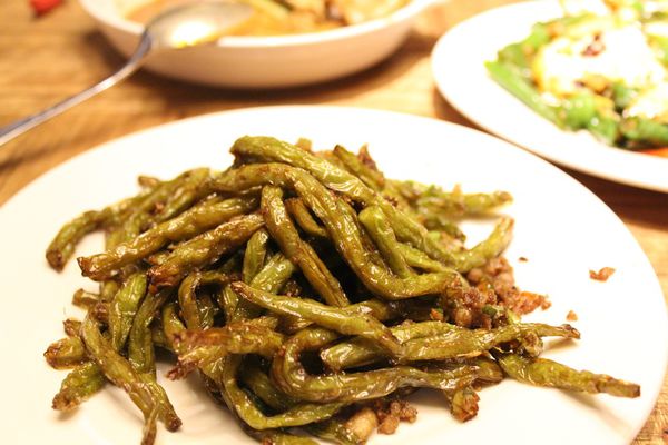 四季豆拌炒蔥薑肉末 , 鹹香好下飯,吃了一堆「辣肉」後突然出現一道完全不辣的菜莫名有種溫馨感。
