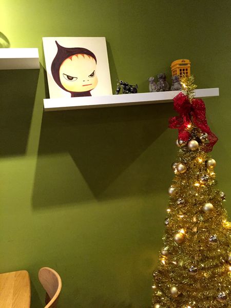 非常日本風味的牆壁架上還置放著日本插畫家奈良美智的作品呢!
