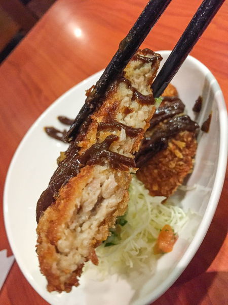 100元加價套餐內容物之一,熱度足夠但幾無肉汁是敗筆,對照菜單中那豐厚的絞肉餡我只能把它當成