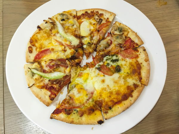 除了鄉村火腿口味其它都點了,依不同口味有的是薄脆餅皮有的則是鬆厚餅皮。在視覺美感的呈現上我想現場實物