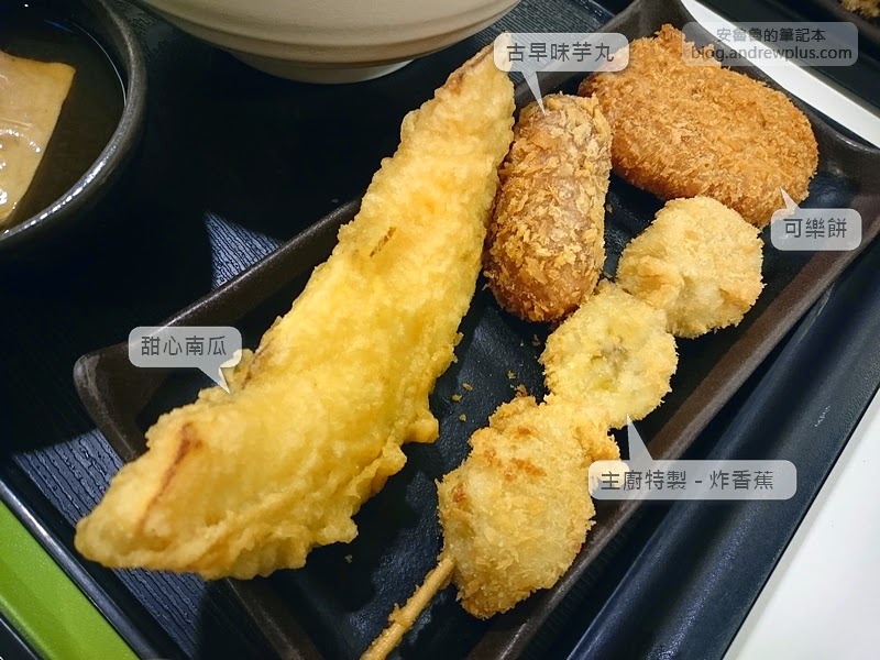 點餐的流程很簡單,就好像在選自助餐一樣,首先取一個餐盤來到第一站,第一站是味增煮,漬物區,第二站是天婦羅區,再來是點麵區,最後則是取麵和結帳櫃檯。