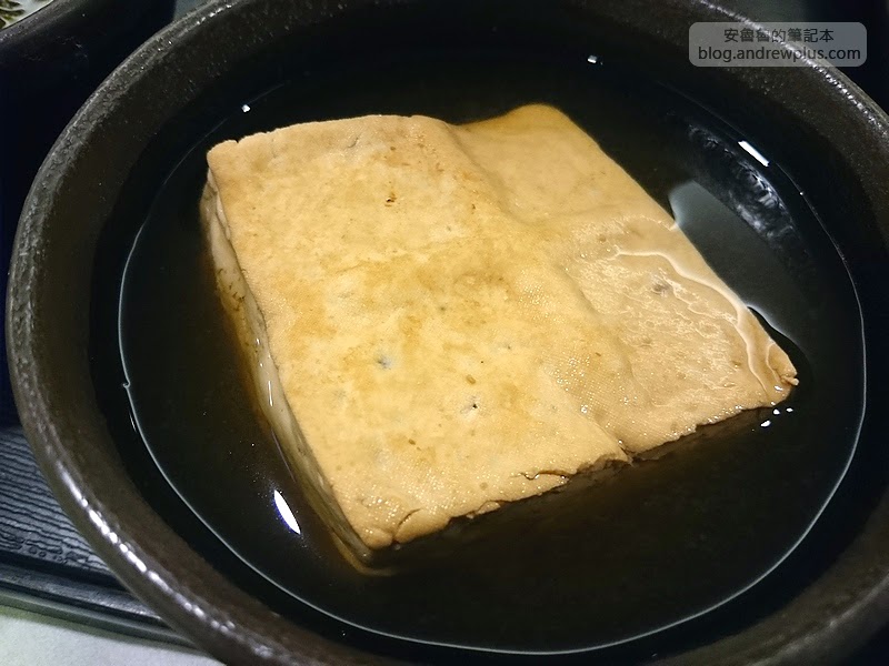 味增煮一律是20元,我們點了湯豆腐和娃娃菜,到了天婦羅區,價格就各有不同了,但是深海大魷魚(80元)推薦一定要點,現炸的大魷魚超好吃的,而且很大一份,不會太油,酥脆彈牙,超好吃的,由於是現炸需要等個兩分鐘,店家用紙袋先裝了起來,我們要內用,所以再拿一個盤子裝起來。當我們把魷魚倒出來的時候,真的被他的分量嚇到了,因為吃完這一份我想我也吃不下主食了!