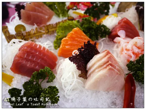 生魚片可真夠大器的呢!鮭魚、鮪魚、紅干、干貝滿滿一盤,