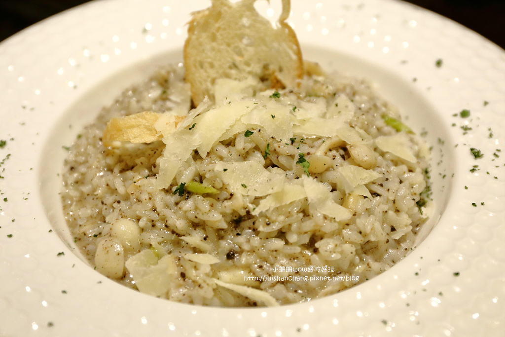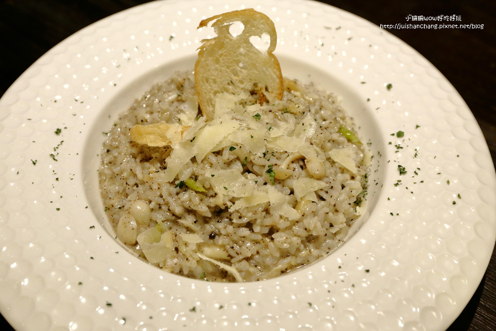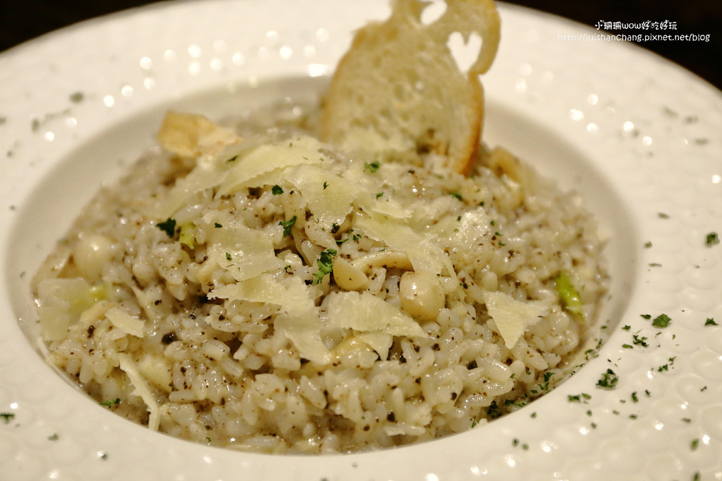 野菇燉飯顏色加了松露,看起來很誘人味道嚐起來也很迷人呀!