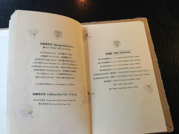 菜單以木質感外邊再搭上白色底與season特有小花為封面的一本像童話書的小冊子,帶著大家看看有什麼樣的餐點
