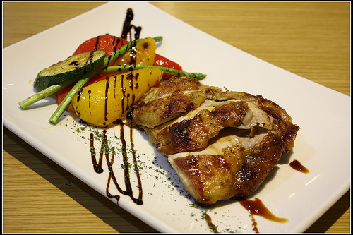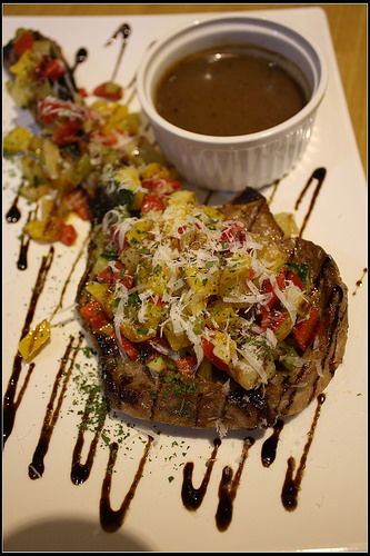 主餐-羅馬香草烤雞腿(499):這去骨雞腿經過傳統香草油泡法,再加上高溫炭烤,非常地滑順好吃,推薦!