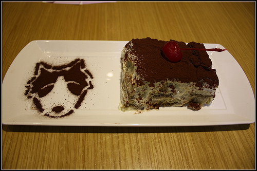 其實,吃到這邊都飽到喉嚨了,但還是要嘗試他們的提拉米蘇,旁邊還有可愛的可可照片耶!太可愛了~怎麼捨得吃!