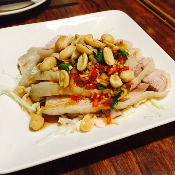這道小菜也很好吃,雞肉片軟嫩再配上蔥薑蒜與辣椒調味上頭一樣撒上花生,真的是會讓人流口水呢!雞肉是冰鎮過的所以很甜保有他的原汁,雞皮也因此Q彈