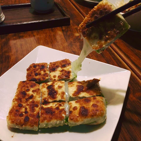 這是裡面我最想吃的一道菜,因為自己整個就很愛吃麻糬阿,因為是熱的顯得整個麻糬又更香,外頭是有一點酥脆再帶一點韌性的餅皮,裡面包著擂茶泥與麻糬,淡淡的擂茶香並不苦澀,因為外頭有一層鍋餅所以搭上麻糬後就會顯得比單吃麻糬來的好咬入口,是一道很有特色的餐點