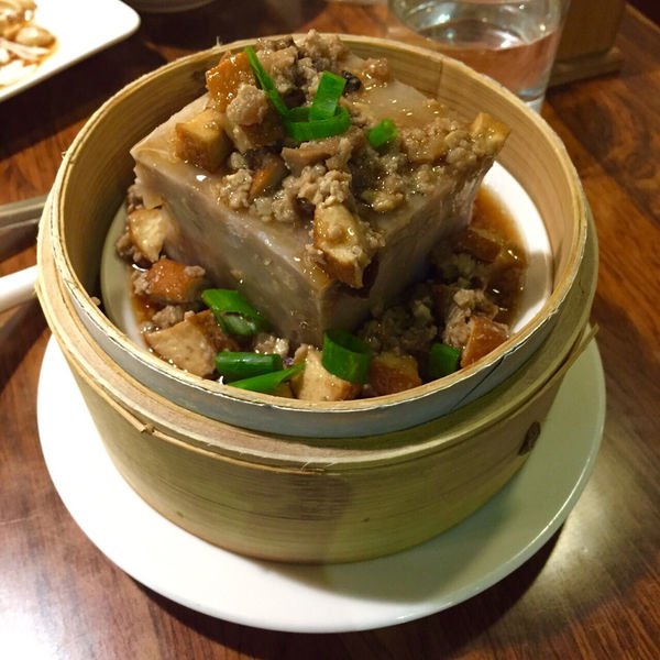 他們家的芋頭糕蒸過後還會淋上滷肉與豆干,一種滷肉飯的概念!芋頭糕口感偏硬,搭配肉汁有一種鹹甜鹹甜的感覺