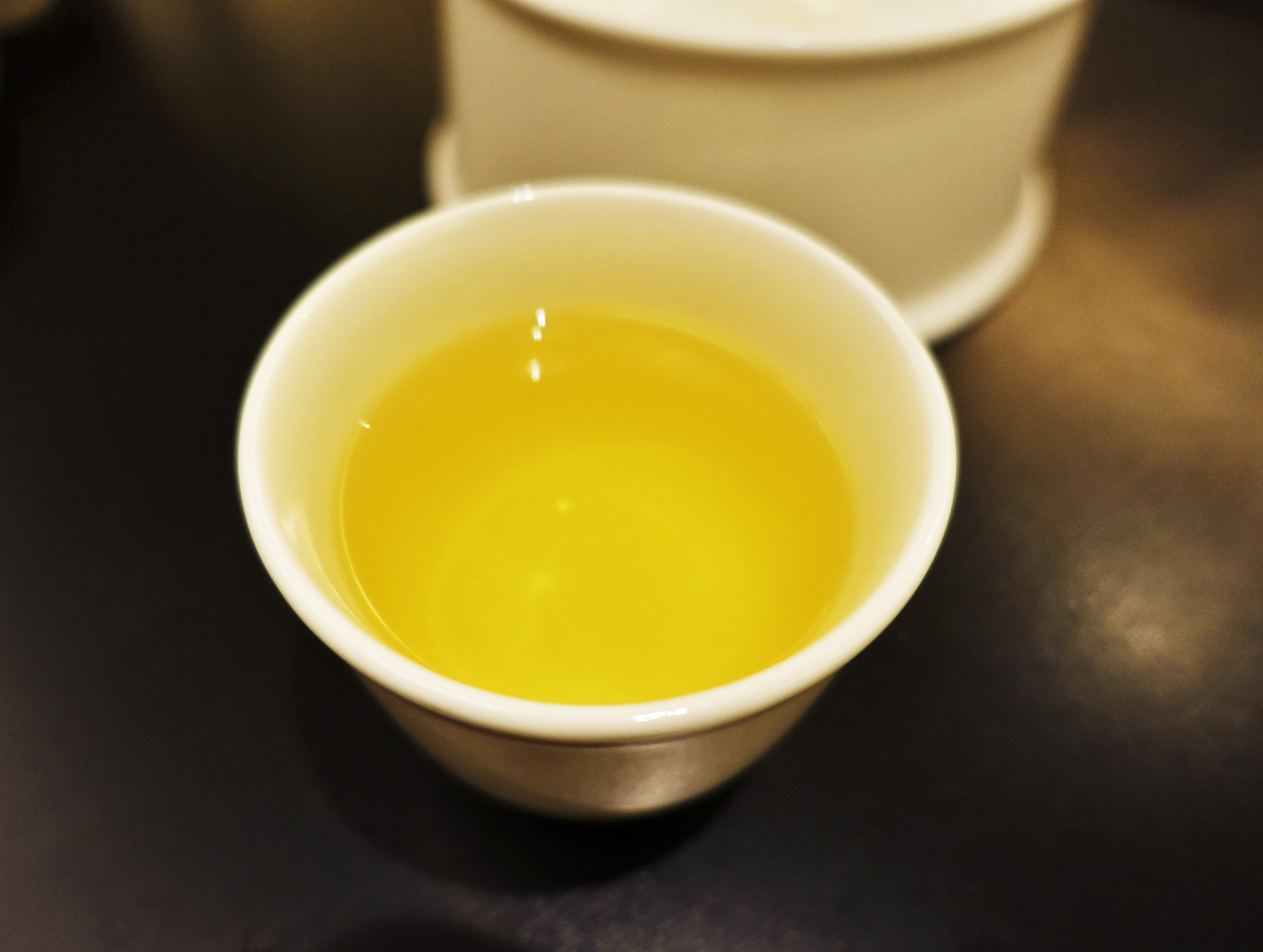 茶色淡黃帶點茉莉花香,喝入口是順口的烏龍風味,可以去膩,還不錯。