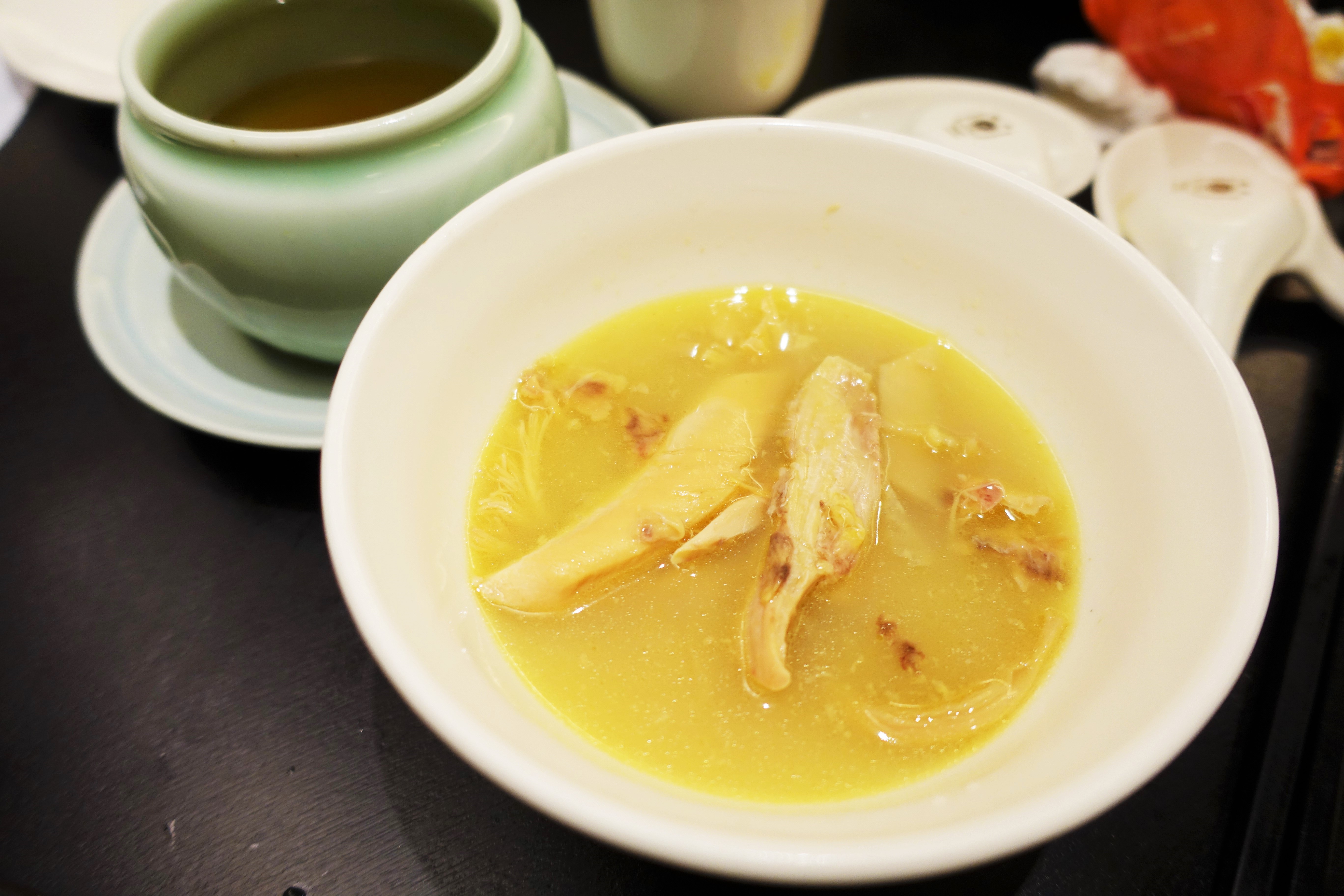 這道雞湯除了費時外,最特別的是使用兩隻雞去煲湯,老母雞熬出湯底後拿出鍋,再加入小土雞(店員說是玉米雞)、金華火腿與干貝,一上桌濃郁的香氣加上湯汁的顏色,超級讓人食指大動!