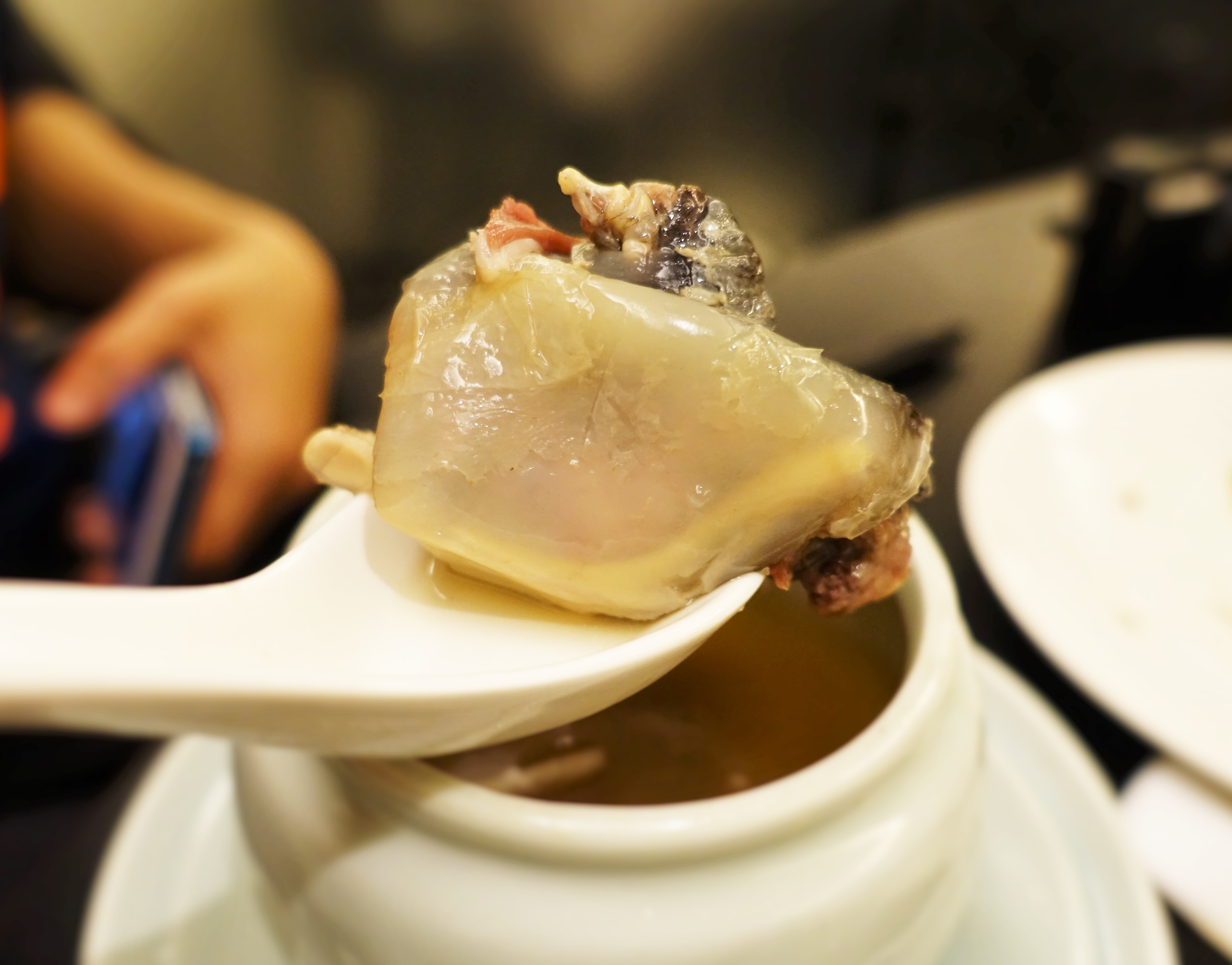服務生說在點水樓會有老饕點甲魚湯專門指定要腿部的肉,我們好奇詢問了指定的原因,原來是因為腿部肉多,還能吃到大塊的裙邊,是甲魚最有營養價值與珍貴的部分。