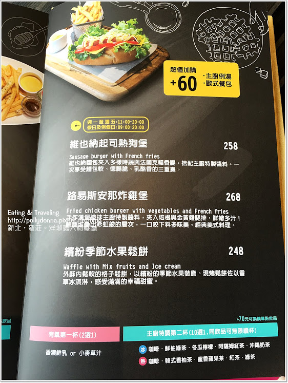 餐點主要是義大利麵,另外有早午餐系列,也有排餐、焗烤、燉飯、披薩。