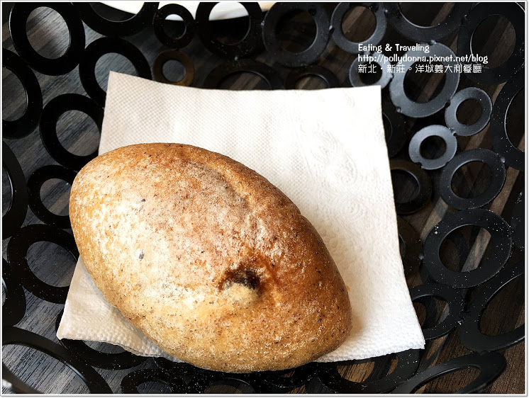 麵包是葡萄雜糧餐包,烤的十分酥脆,熱熱的吃非常好吃,我還拿來沾沙拉的優格醬。