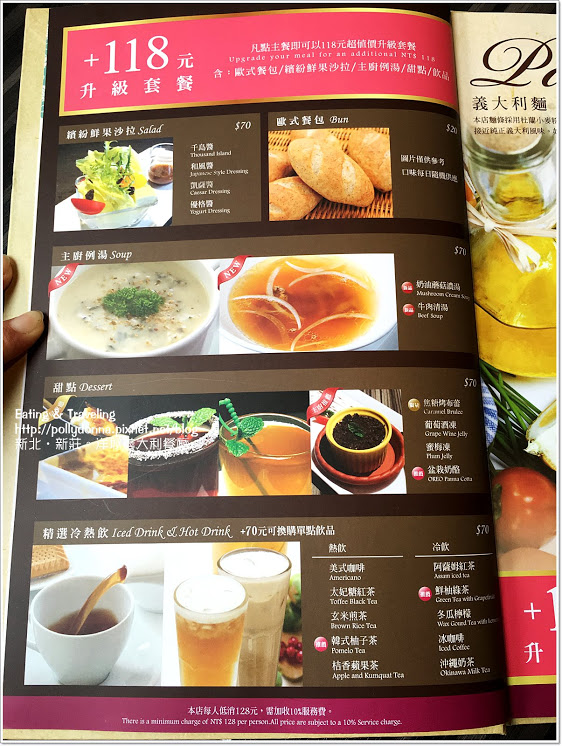 點主餐可以加價NT.118升級為套餐,套餐有沙拉、餐包、湯、甜點和飲料,我覺得十分划算。