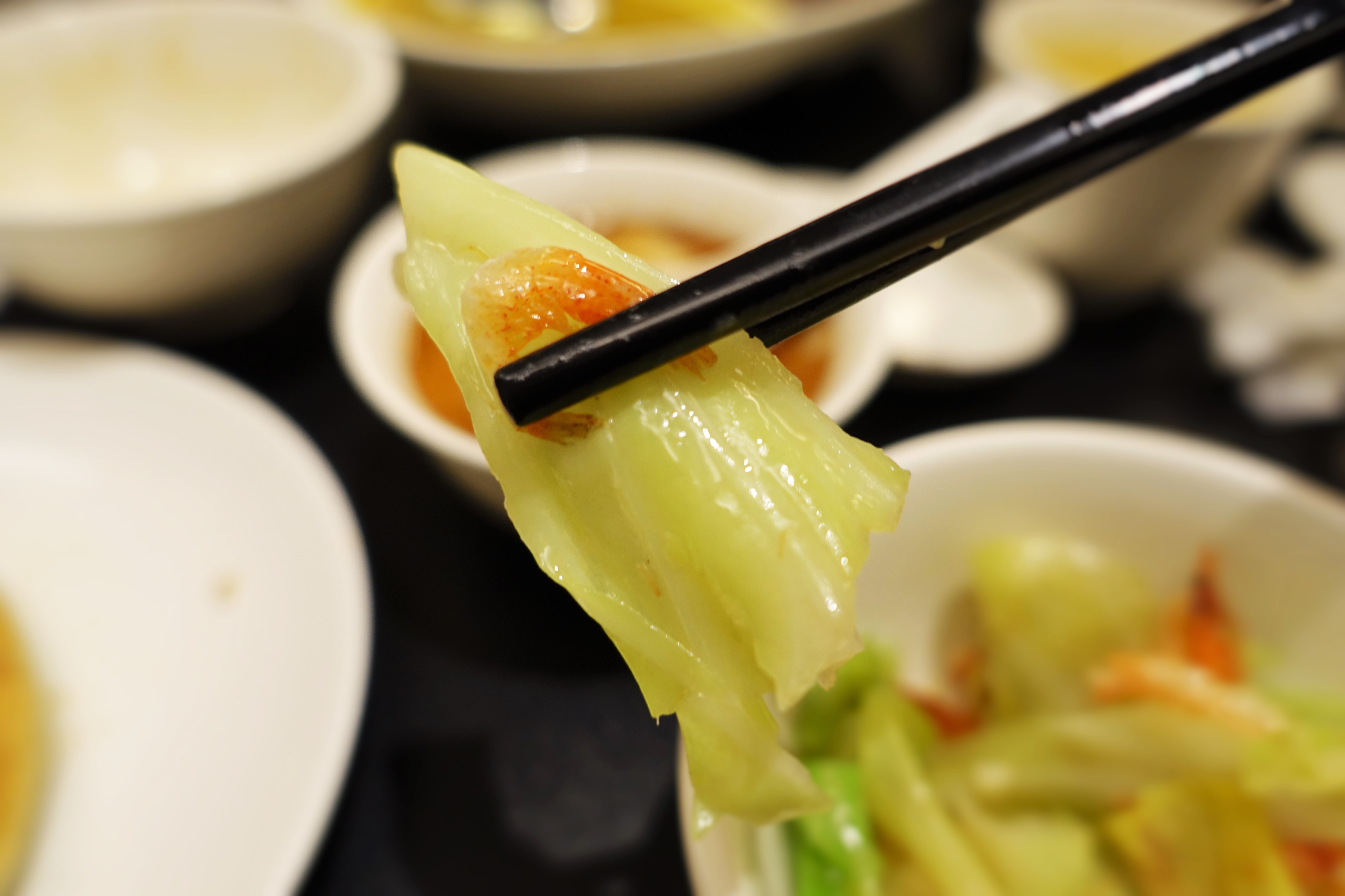 在高麗菜加入了國寶蝦-櫻花蝦,舉筷入口,滿滿的鮮蝦風味充斥,咀嚼聲起,新鮮高麗菜的鮮脆口感與清甜風味環繞。